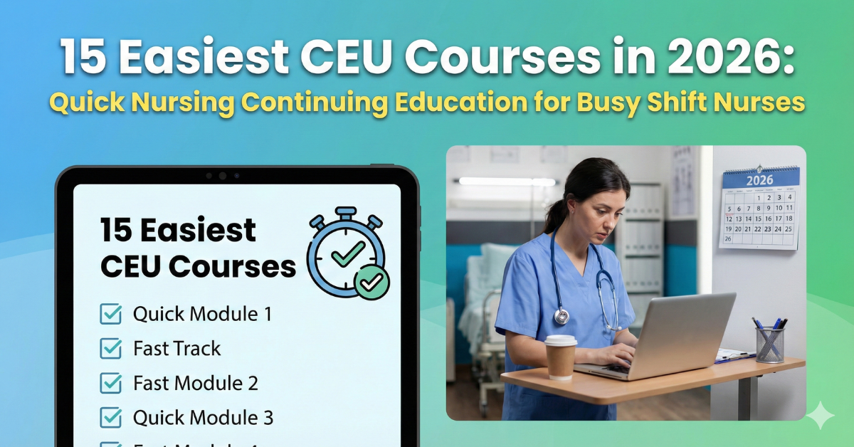 What are 15 Easiest CEU Courses in 2026: Quick Nursing Continuing Education for Busy Shift Nurses. Discover the 15 simplest CEU guides for nurses in 2026. Complete persevering with training necessities quick among shifts with cellular-pleasant alternatives.