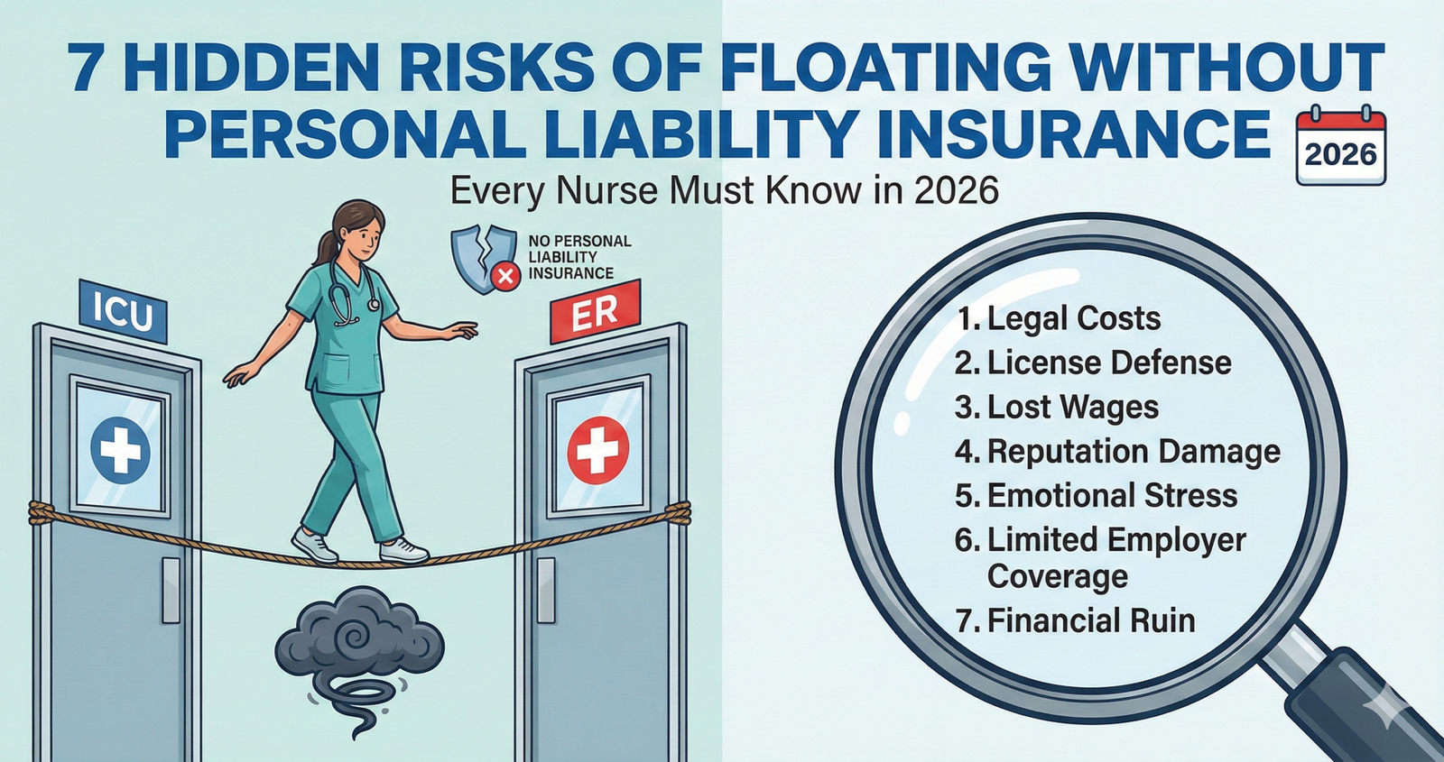 Discover 7 Hidden Risks of Floating Without Personal Liability Insurance Every Nurse Must Know in 2026. The 7 vital dangers nurses face while floating without private legal responsibility coverage in 2026. Protect your license, career, and price range today.