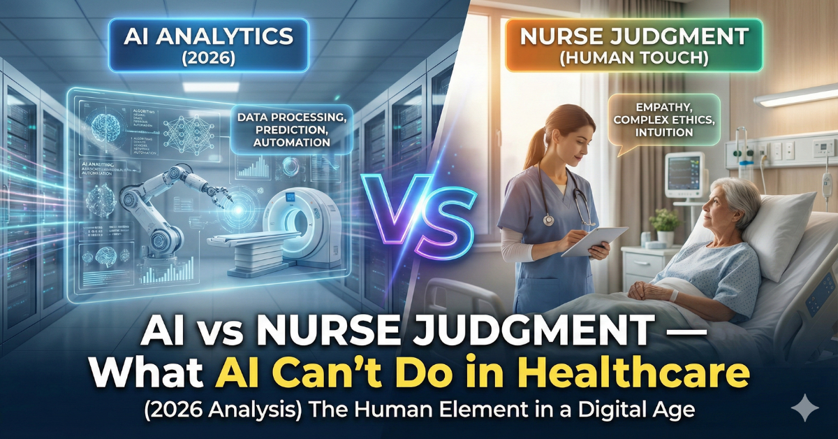 Explore AI vs Nurse Judgment — What AI Can’t Do in Healthcare (2026 Analysis). Discover what AI can`t update in nursing care. Learn why human judgment, empathy, and medical instinct stay irreplaceable in healthcare in 2026.