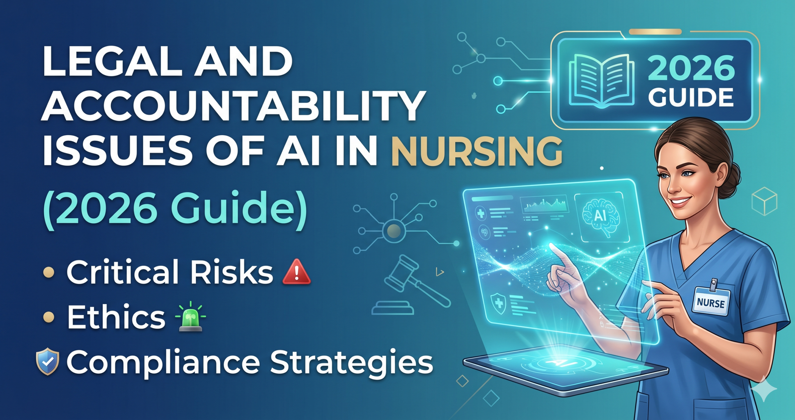 Explore Legal and Accountability Issues of AI in Nursing (2026 Guide): Critical Risks, Ethics & Compliance Strategies. Felony and responsibility troubles of AI in nursing, inclusive of legal responsibility, ethics, and compliance demanding situations shaping current healthcare in 2026.