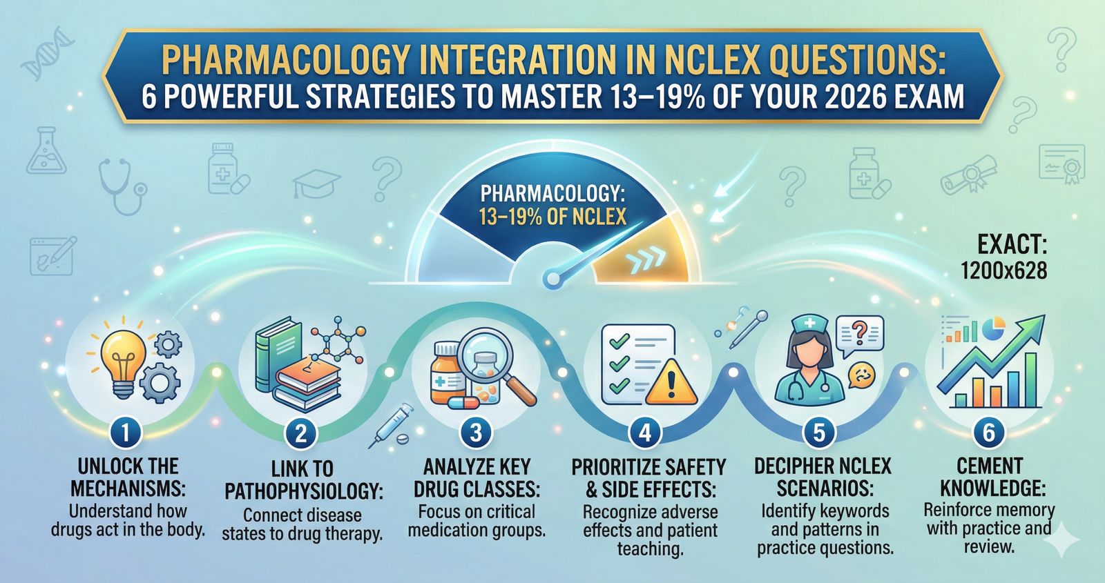 Master Pharmacology Integration in NCLEX Questions: 6 Powerful Strategies to Master 13–19% of Your 2026 Exam. Pharmacology integration in NCLEX questions in 2026. Discover NGN formats, high-yield drug classes, scientific judgment strategies, and confirmed have a look at strategies to by skip for your first try.