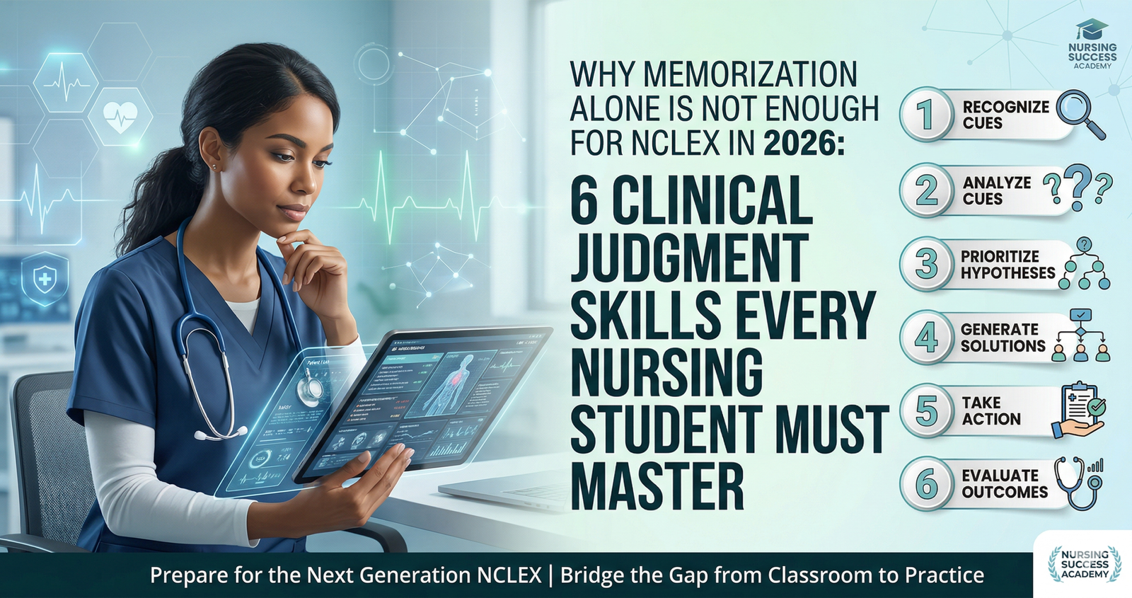 Discover Why Memorization Alone Is Not Enough for NCLEX in 2026: 6 Clinical Judgment Skills Every Nursing Student Must Master.
